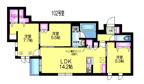 - ペット相談 / ペット専用設備 / 陽当り良好 / 保証人不要 / 2人入居可 / 室内洗濯機置場 / 都市ガス / 公営水道 / 公共下水 / 24時間換気システム / 電気有 / 敷地内ごみ置き場 / 耐震構造 / ガスコンロ / コンロ2口以上 / システムキッチン / コンロ3口 / カウンターキッチン / バス・トイレ別 / 追焚機能浴室 / 浴室乾燥機 / 温水洗浄便座 / 浴室1坪以上 / 独立洗面台 / 床暖房 / ウォークインシューズクロゼット / BS / 光ファイバー / ネット使用料無料 / オートロック / TVモニタ付インターホン / 宅配ボックス / 複層ガラス / ディンプルキー / エアコン全室 / 角部屋 / 初期費用カード決済可