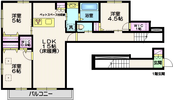 - ペット相談 / ペット飼育可 / 保証人不要 / 2人入居可 / 室内洗濯機置場 / フローリング / バルコニー / 都市ガス / 公営水道 / 公共下水 / 電気有 / 駐輪場 / 敷地内ごみ置き場 / 耐震構造 / ガスコンロ / コンロ2口以上 / システムキッチン / コンロ3口 / カウンターキッチン / バス・トイレ別 / 追焚機能浴室 / 浴室乾燥機 / 温水洗浄便座 / 洗面台 / シャワー / 独立洗面台 / 床暖房 / 床下収納 / シューズボックス / BS / ネット使用料無料 / TVモニタ付インターホン / 宅配ボックス / 複層ガラス / エアコン3台 / 初期費用カード決済可